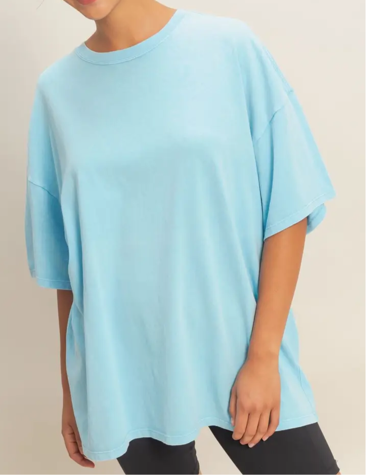 This oversized tee features a classic crew neckline and boxy drop shoulders with wide, relaxed sleeves. Giving an authentic, vintage feel, enhanced by a unique mineral wash finish that lends a faded, lived-in look.